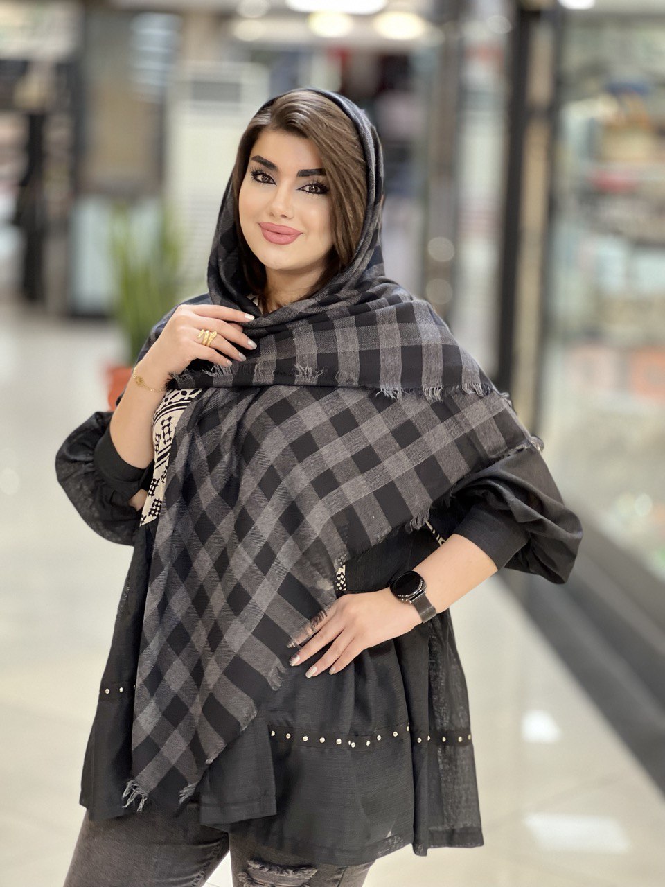 روسری نخی ملانژ پاییزه دور ریش